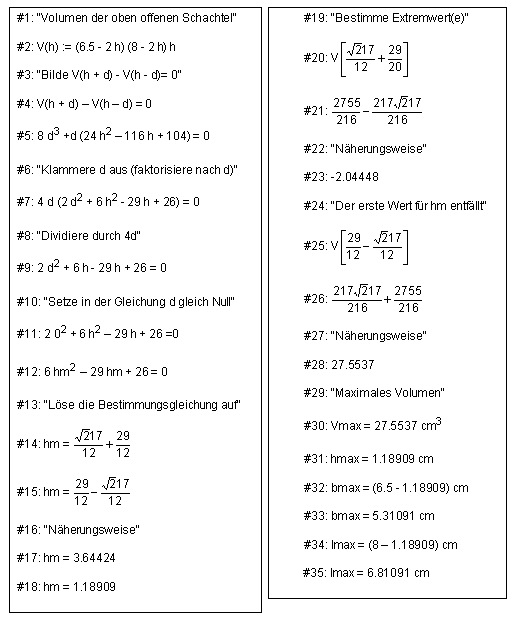 Beispiel 1 (Volumen einer nach oben offenen Schachtel)